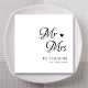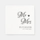 Add a touch of modern elegance to your wedding reception with our personalised Mrs. and Mrs. wedding napkins. Featuring a beautiful modern script font and heart symbol, these napkins are sure to impress your guests. The black text is personalised with your names and wedding date, and the white background creates a clean and sophisticated look.