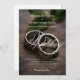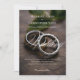 Modern script wedding rings background print invitation announcement card.