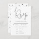 Modern and simple wedding RSVP card featuring a hand written script that says "Rsvp" in black and white. This response card also lists the entree selection for guests to choose from. This minimalistic design works for any season!