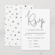 Modern and simple wedding RSVP card featuring a hand written script that says "Rsvp" in black and white. This response card also lists the entree selection for guests to choose from. This minimalistic design works for any season!