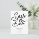 Congratulations on your engagement! Impress the guests with this elegant save the date template card. This design features a black and white minimalistic design with a typography script font in the middle that says "save the date." Customise this product by adding your own wedding info.