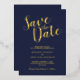 Modern Script Wedding Save the Date Navy and Gold