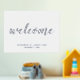 featuring title "Welcome" in real silver foil modern script font with details in real silver modern sans serif font on white background.