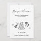 Delicate line art wedding icons—including champagne glasses, a tiered cake, bouquet, rings, and sweet heart accents—add a playful yet refined touch. The simple monochrome palette keeps the design timeless, making it perfect for formal celebrations, modern weddings, or classic black tie events.
