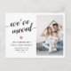 We've moved! Minimalist and modern change of address postcard with a pretty printed rose gold heart and a fresh script calligraphy design as well as your custom photo of you in your new home. Personalise with a custom message on the back of this moving announcement.