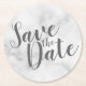 Modern Script White Marble Wedding Save the Date Round Paper Coaster