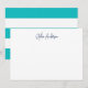 This modern note card features modern script for your name/business name with a white stripes and customisable back background colour (simply click customise to change the background colour).