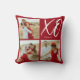 Modern Script XO Year Photo Collage Hearts Throw Pillow. Celebrate your unique love story with this elegant and modern photo collage throw pillow. Featuring a striking red background and a chic white script "XO" design, this pillow allows you to showcase three of your favorite memories in a stylish grid. It is the perfect personalized accent for a living room or bedroom, and makes a thoughtful gift for Valentine’s Day, weddings, anniversaries, or birthdays. Upload your photos and change the year to the current year. Background color and font colors can be changed in the design edit tool. Contact designer with any customization questions.