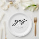 Modern Script Yes Engagement Wedding Party Paper Plate