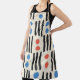 Modern seamless pattern with stripes and dots in black,red and blue on vanilla background.