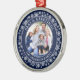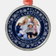 Modern Seas and Greetings Christmas Holiday Ornament - Navy Blue and White Snowflakes Background.