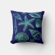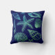 Modern Seashell Navy Aqua White Ombre Beach Shell Cushion