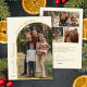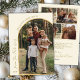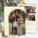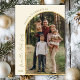 Elegant Gold Arch 5 Photo Season's Greetings Happy Holiday Card. Celebrate the season in style with this elegant family photo Christmas card featuring a modern gold colour arch-shaped 1 photo frame. Personalise it with your favourite family photos, family name, and the year on neutral off white or cream beige background. The festive minimalist design is highlighted with elegant faux-gold colour Season's Greetings typography, creating a warm and timeless look. The reverse side showcases 4 photo collage with thin gold line border and holiday message template with hand lettered names. A perfect holiday card to share with family and friends in winter holiday season.