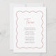 Pink Red Wavy Border Modern Retro Wedding Table Number Seating Charts Card with Guest Names. All the texts are pre-arranged for you to personalise easily and quickly with your own details..