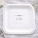 Designed for couples who appreciate the “old money” aesthetic of understated elegance, this plate features the same refined serif typography and crisp monochrome palette found throughout your formal stationery suite. Its structured square silhouette offers a modern, elevated alternative to traditional round plates, transforming a functional necessity into a deliberate design statement. It is the perfect canvas for wedding cake, dessert displays, or late-night bites, ensuring your presentation remains polished down to the very last crumb.