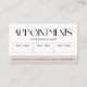 Modern business appointment card with light taupe and white background and a modern serif font with swirls and glyphs. This beauty salon appointment reminder card includes 3 date & time slots or you can add more as you need to. The elegant display font adds a modern touch to this booking reminer card. Insert your logo on the back and make your own professional appointments cards for your boutique, beauty salon or spa.