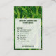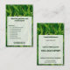 Modern Service List Call to Action Lawn Care Business Card, in portrait format and Euro size 2.165" x 3.346" (55 x 85 mm EU), features front and back a decorative custom lawn image. Add your company motto and list of services offered, as well as your email and website address on the front. And find placeholders for your name, expertise, a simple call to action "Call for a FREE quote!" and invitation to connect on Facebook with handle and hashtag on the back. ✨ #EuroLawnCareBizCard #GreenWhiteBranding #LawnCareServiceBranding #ZazzleMade #KBMD3signs