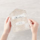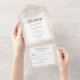 Your wedding day is a once-in-a-lifetime event, and it deserves an invitation that reflects the unique and modern love story you share. This shades of beige snowflake design combines contemporary elegance with a touch of winter magic, setting the stage for a truly unforgettable celebration. The All-in-One wedding invitations are both beautiful and practical by combining the wedding invitation with an easy to remove perforated RSVP postcard. They are also quick and easy to prepare for mailing. Simply address the invitation, fold the back flap and seal with the included clear stickers. Once your guests receive the pre-addressed invitation they simply tear off the perforated RSVP card and drop it in the mail.