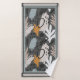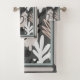 Contemporary Towel Set with Perwinkle, Blush, Orange flowers on brown and teal background.