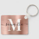 Modern Signature Monogram Rose Gold Foil Rectangle Key Ring