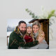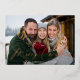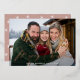 Modern holiday photo card featuring "Merry Christmas" displayed in a handwritten rose gold foil script overlaying your horizontal photo. Personalise the front of the foil Christmas photo card with your family name and the year. The card reverses to a dusty rose and white snowflake pattern.