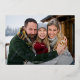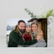 Modern holiday photo card featuring "Merry Christmas" displayed in a handwritten silver foil script overlaying your horizontal photo. Personalise the front of the foil Christmas photo card with your family name and the year. The card reverses to a navy and white snowflake pattern.