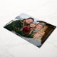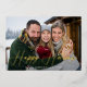 Modern holiday photo card featuring "Happy Holiday" displayed in a handwritten gold foil script overlaying your horizontal photo. Personalise the front of the foil holiday photo card with your family name and the year. The card reverses to a gingerbread and white snowflake pattern.