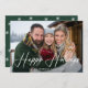 Modern holiday photo card featuring "Happy Holidays" displayed in a white handwritten script overlaying your horizontal photo. Personalise the front of the holiday photo card with your family name and the year. The card reverses to a green and white snowflake pattern.
