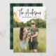 Modern Signature Script Green Plaid Photo Holiday Card