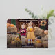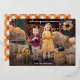 Cute Thanksgiving photo card featuring "Happy Thanksgiving" displayed in a handwritten gold foil handwritten script overlay. Personalise the card with your favourite horizontal photo and your family name in white lettering. The card reverses to display a cream and orange watercolor plaid background.