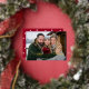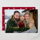 Modern holiday photo card featuring "Happy Holiday" displayed in a handwritten gold foil script overlaying your horizontal photo. Personalise the front of the foil holiday photo card with your family name and the year. The card reverses to a red and white snowflake pattern.