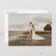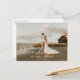 Elegant "Thank You" modern signature script in white, wedding photo thank you postcard. Back of card features watercolor wildflower arrangement and multiple template text lines for names, address and message.