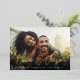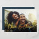 A modern save the date card designed to accommodate your favourite horizontal or landscape orientated full-bleed engagement photo. Your names appear near the bottom of your photo in gold foil handwritten script lettering, with your wedding date and wedding location beneath. Personalise the back with additional details, such as your wedding website.