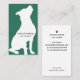 Simple and modern dog training business card features on green card with white dog silhouette.