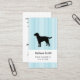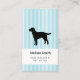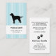 Simple and modern dog walking and pet sitting business card features blue stripe card with black dog silhouette.