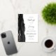 The left-hand edge of this elegant modern wedding invitation features a black watercolor agate border trimmed with faux silver glitter. The customisable text combines handwriting, copperplate and italic fonts in real silver foil on a white background. The reverse side features a matching black and silver agate design.