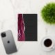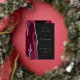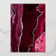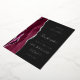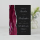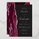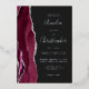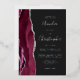 The left-hand edge of this elegant modern wedding invitation features a burgundy red watercolor agate border trimmed with faux silver glitter. The customizable text combines handwriting, copperplate and italic fonts in real silver foil on an off-black background. The reverse side features a matching burgundy and silver agate design.