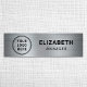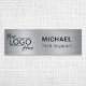 Modern name tag with your business or organisation's logo against a silver faux metallic background. Add a name and title in simple typography.