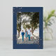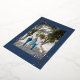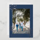 Modern, vertical holiday card features a winter-themed design with snow flakes and real silver foil. Personalize with the easy to edit template featuring a simple, minimalist font. Replace the photo on the front with your own. The back is white snowfall (not real silver foil). Check out other items in the "Real Foil Holiday Cards" collection.