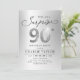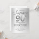Modern Shhh, it's a surprise 90th birthday party invitation features stylish script and faux silver glitter number 90 and your party details on silver background, simple and elegant, great surprise adult milestone birthday invitation for men and women.