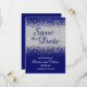 This modern and classy "Save the Date" card has a sliver glitter effect on a rich royal blue background. You can customise the font style and colour any way you like as well as change the background colour of the card. This is part of a beautiful matching wedding suite that can be fully personalised.