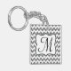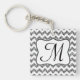 Modern Silver Glitter Chevron Zig Zag Stripe Monogram Initial Personalised Key Chain