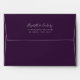 The inside of this elegant modern wedding invitation envelope features a silver faux glitter design on a dark purple background. Customise the back flap with the names of the bride and groom in silver grey handwriting script and return address in copperplate font on a dark purple background.