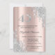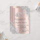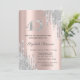A modern, chic, and glamourous with silver glitter drips on a rose gold background.