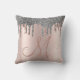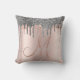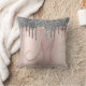 Modern Silver Glitter Drips Rose Gold Monogram Cushion