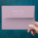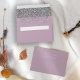 The inside of this elegant modern wedding invitation envelope features a silver faux glitter design on a dusty lavender purple background. Customise the back flap with the names of the bride and groom in white handwriting script and return address in copperplate font on a dusty lavender background.