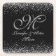 A modern and classy black and white monogram wedding coaster with a silver glitter effect on midnight black. This is part of a matching wedding suite that can be fully personalised.