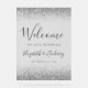 The top and bottom borders of this elegant sign are decorated with silver faux glitter. Customise the text in charcoal grey handwriting script and serif fonts on a pale grey background.