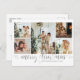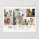 Modern Silver Merry Christmas Heart Script 5 Photo Holiday Postcard