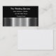 Silver metallic look welding service business cards in s simple design with silver tone design element that mimics the look of metal and text you can customise online. Created for a professional construction Welder, metal recycling service, metalworker, or industrial themes.